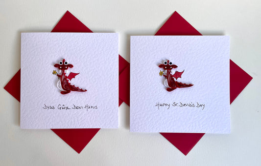 Handmade St David’s Day Card - Quilled 3D Welsh Dragon with Daffodil