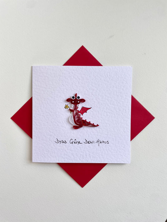 Dydd Gŵyl Dewi Hapus - Handmade St David’s Day Card - 3D Welsh Dragon with Daffodil