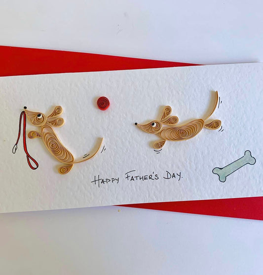 Handmade Father’s Day Card - 3D Sausage Dogs - Quilled Dachshund Card