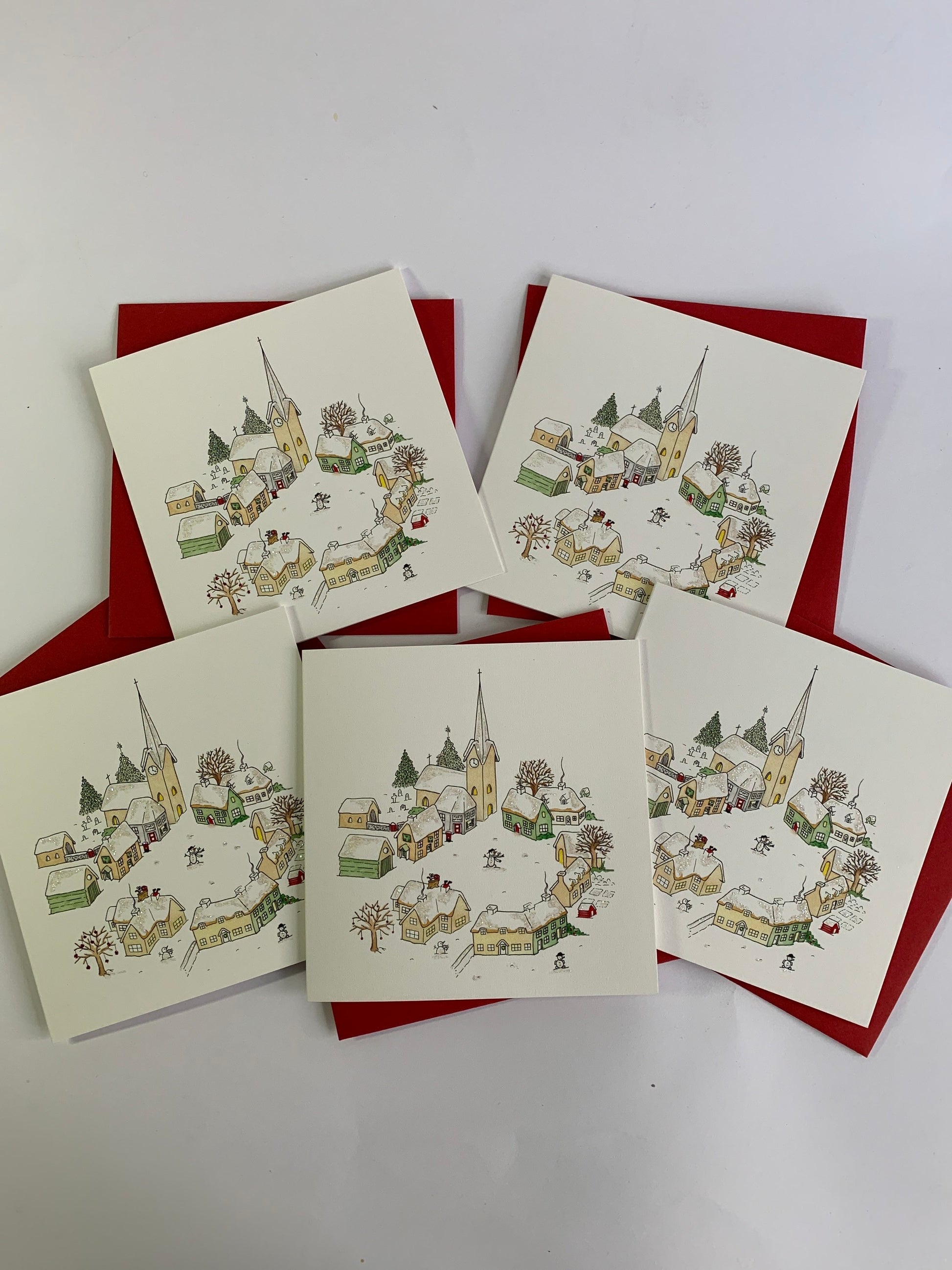 This traditional snowy village Christmas card was the very first Blue Lobster Christmas card and a popular favourite.