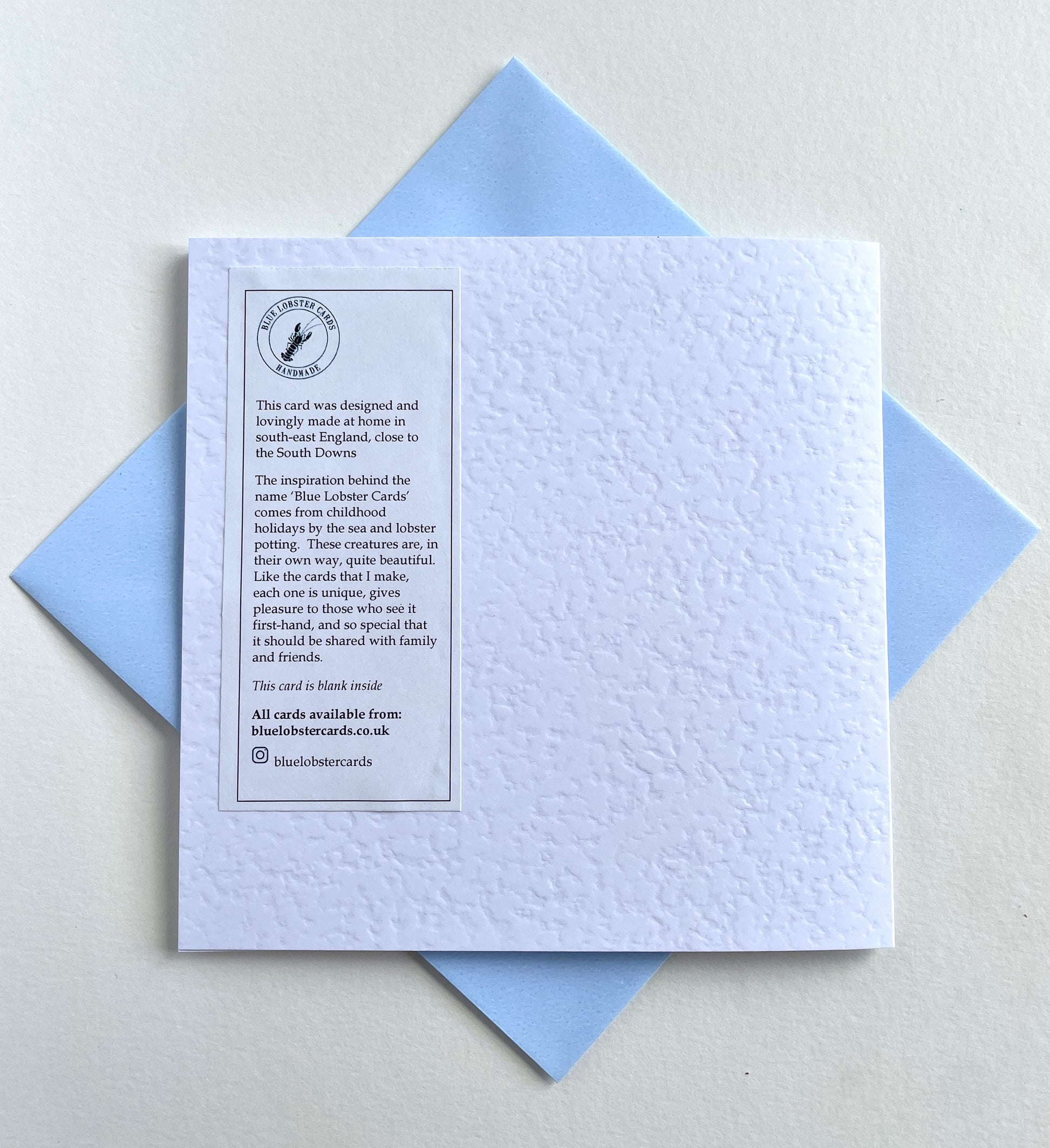 This card is handmade to order here at home. ‘Happy Mother’s Day’ is handwritten in black ink beneath the flower but any caption or personalisation is possible - simply message me or give details in the ‘special instructions’ box in your cart basket before checking out.